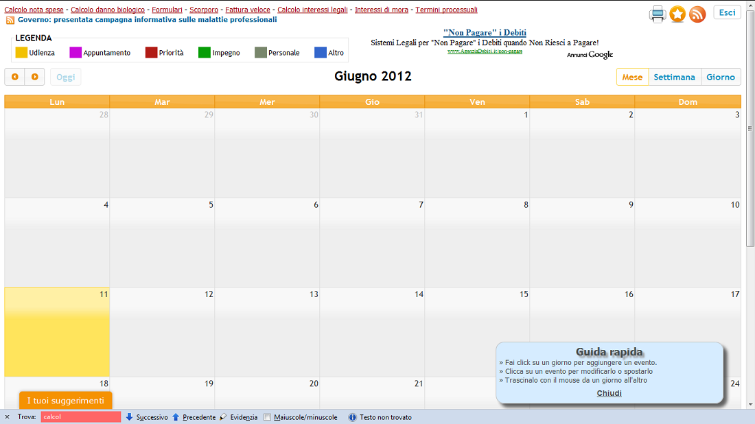 Torna alla pagina per accedere all'agenda legale