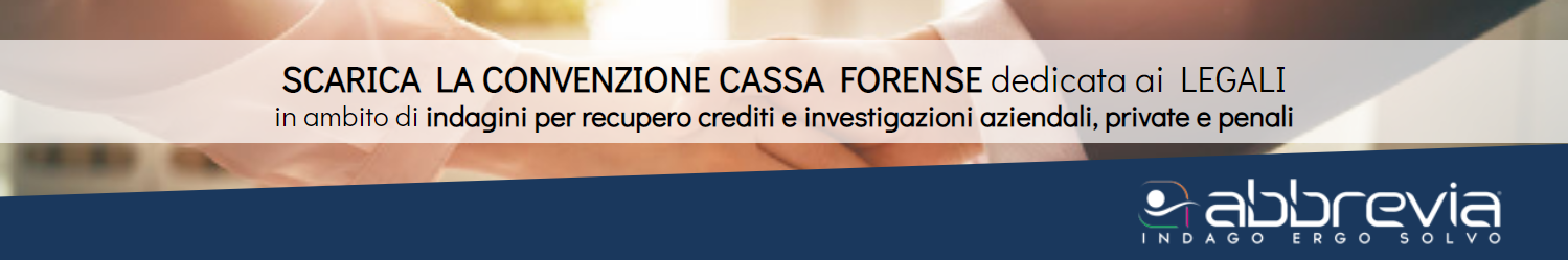 Questi strumenti di investigazione sono inseriti nella convenzione tra Abbrevia SpA e Cassa Forense, rinnovata anche per quest'anno. Per approfondire altri servizi e le agevolazioni dedicate ai legali, scarica la Convenzione Cassa Forense.